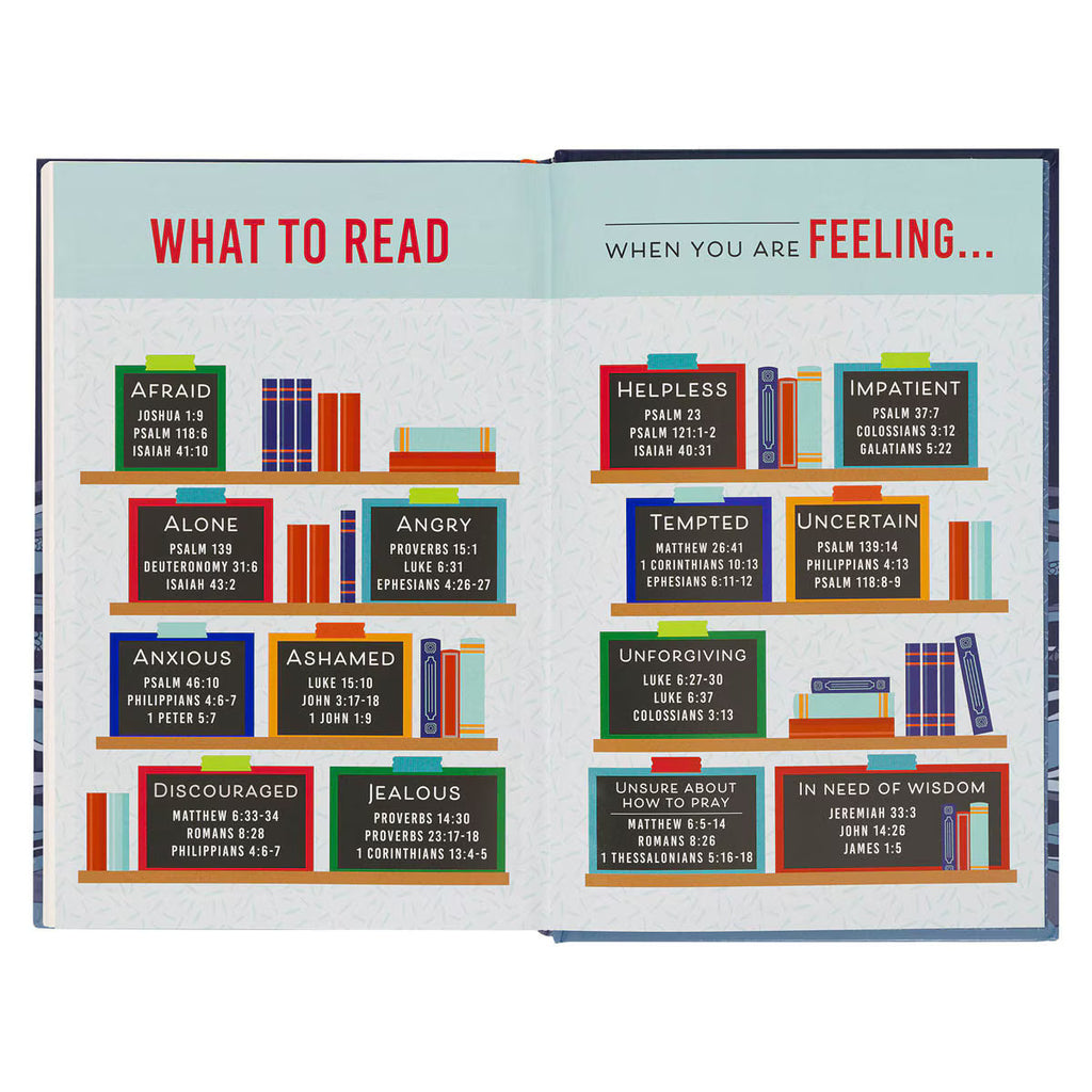 40 engaging full-color pages placed throughout the KJV text provide an enriching study experience, inspiring young readers to explore the stories on a deeper level and form meaningful connections with the characters and locations they encounter. Additionally, this Bible offers valuable tools for further study, including an index featuring 24 carefully selected Bible memory verses, a thematic Scripture verse index organized by theme, and a vividly illustrated map of the Promised Land. These resources empower young readers to deepen their understanding and forge a strong connection to the Word of God.