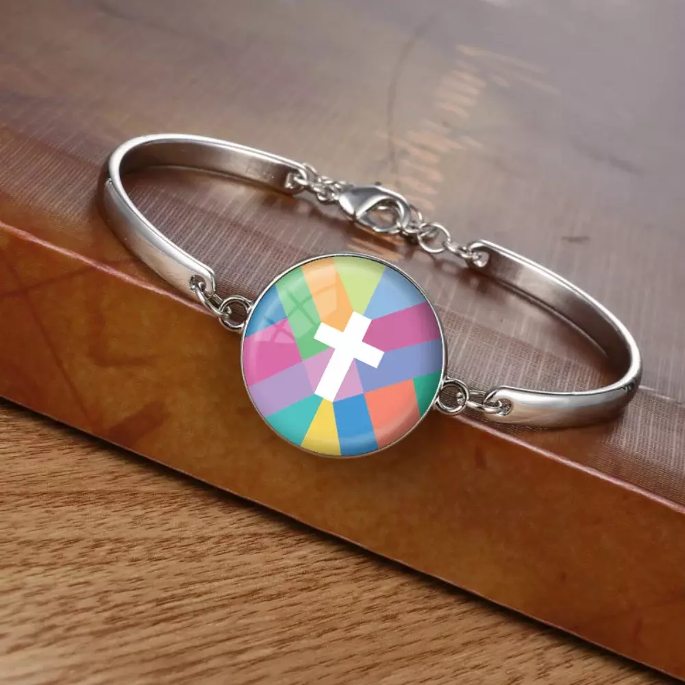 The Kaleidoscope Cross Bracelet reflects the dynamic beauty of faith, with a design that shifts and changes with every movement, symbolizing spiritual growth and transformation. It serves as a reminder of the ever-evolving light and grace that guide us on our journey.