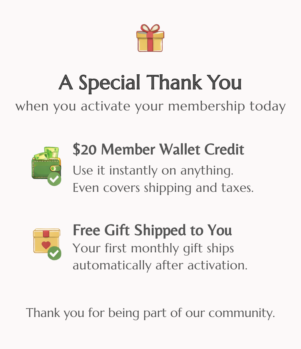 Your first monthly gift ships automatically right after you activate — completely free. No order is required.