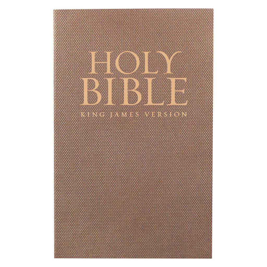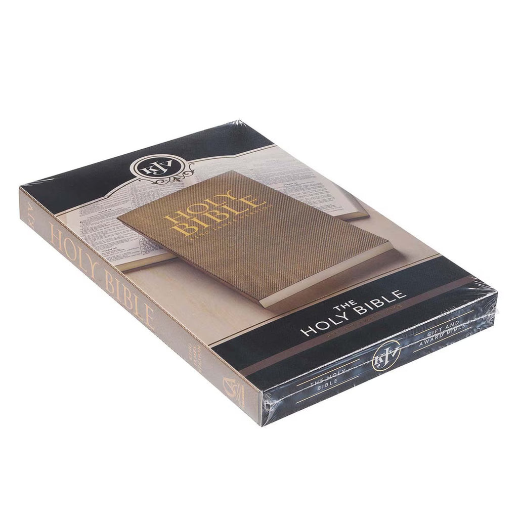The Antique Gold Softcover Gift and Award King James Version Bible is a glossy softcover edition of the King James Bible with a texturized gold paperback cover design offered at a very thrifty price.