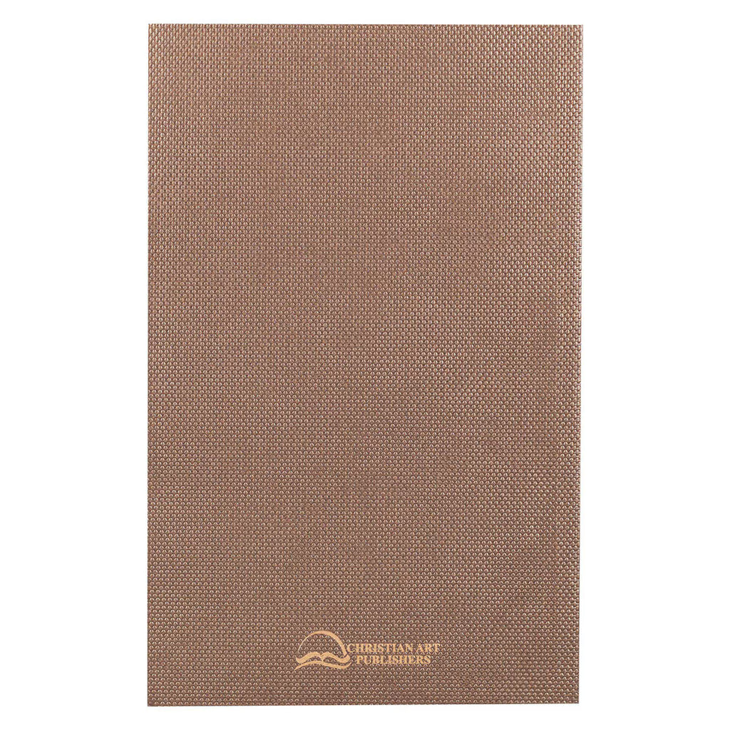 An attractive texturized weave design on the cover of the paperback Bible makes carrying this Bible a tactile experience! A gold-foiled title contrasted against gold-texturized background creates an antique gold look with a modern twist. The title and version reference appear both on the cover and the spine.