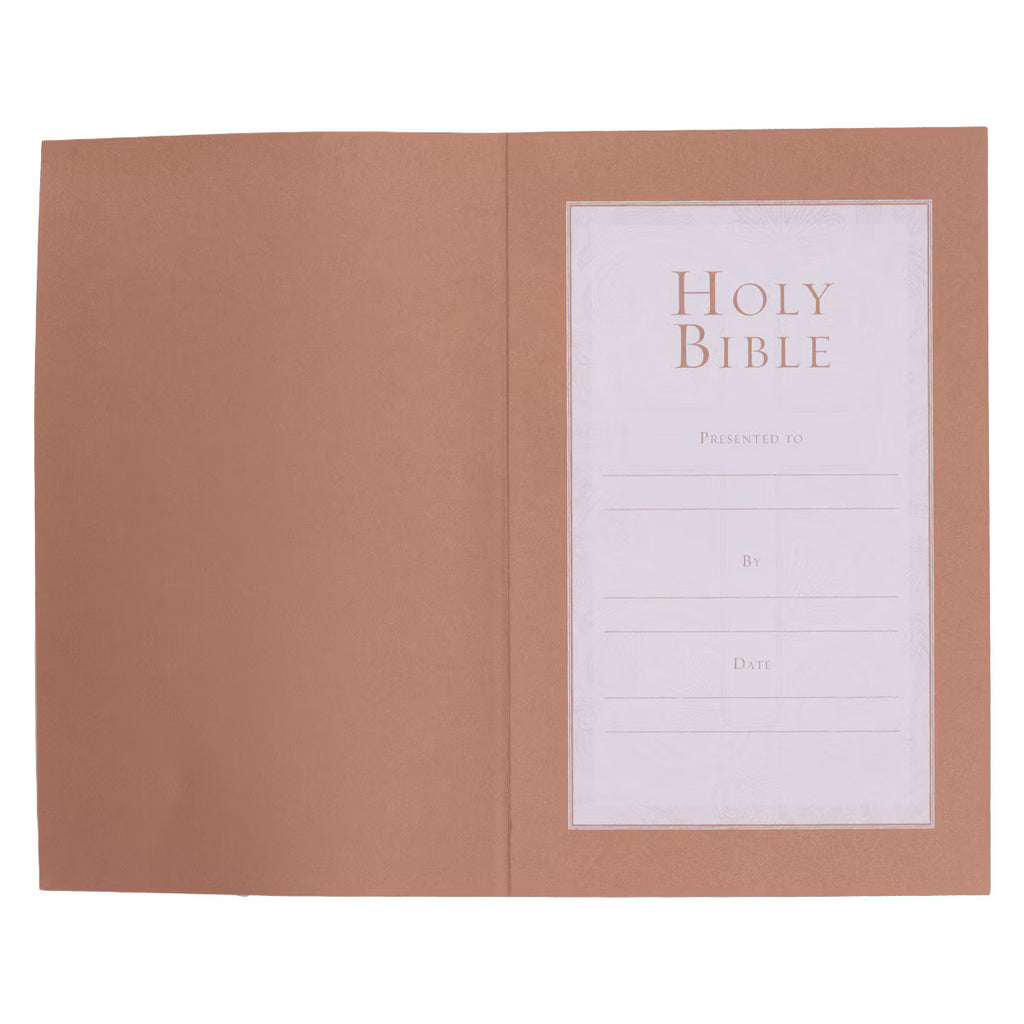 The Antique Gold Softcover Gift and Award King James Version Bible is an excellent gift to present at the celebration of special achievements at church or youth camp. The Antique Gold Softcover Gift and Award King James Version Bible can also be used as an outreach Bible.